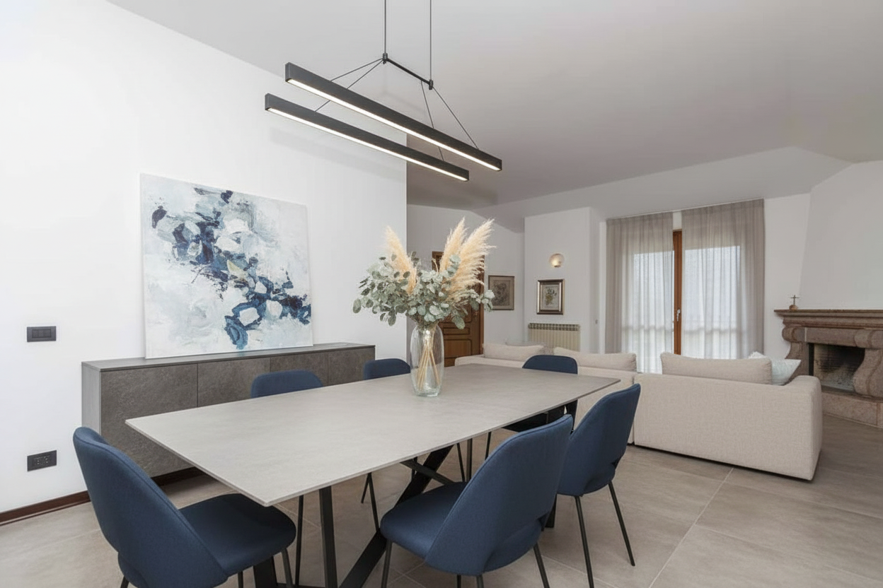 Ampio soggiorno open space, luminoso e accogliente