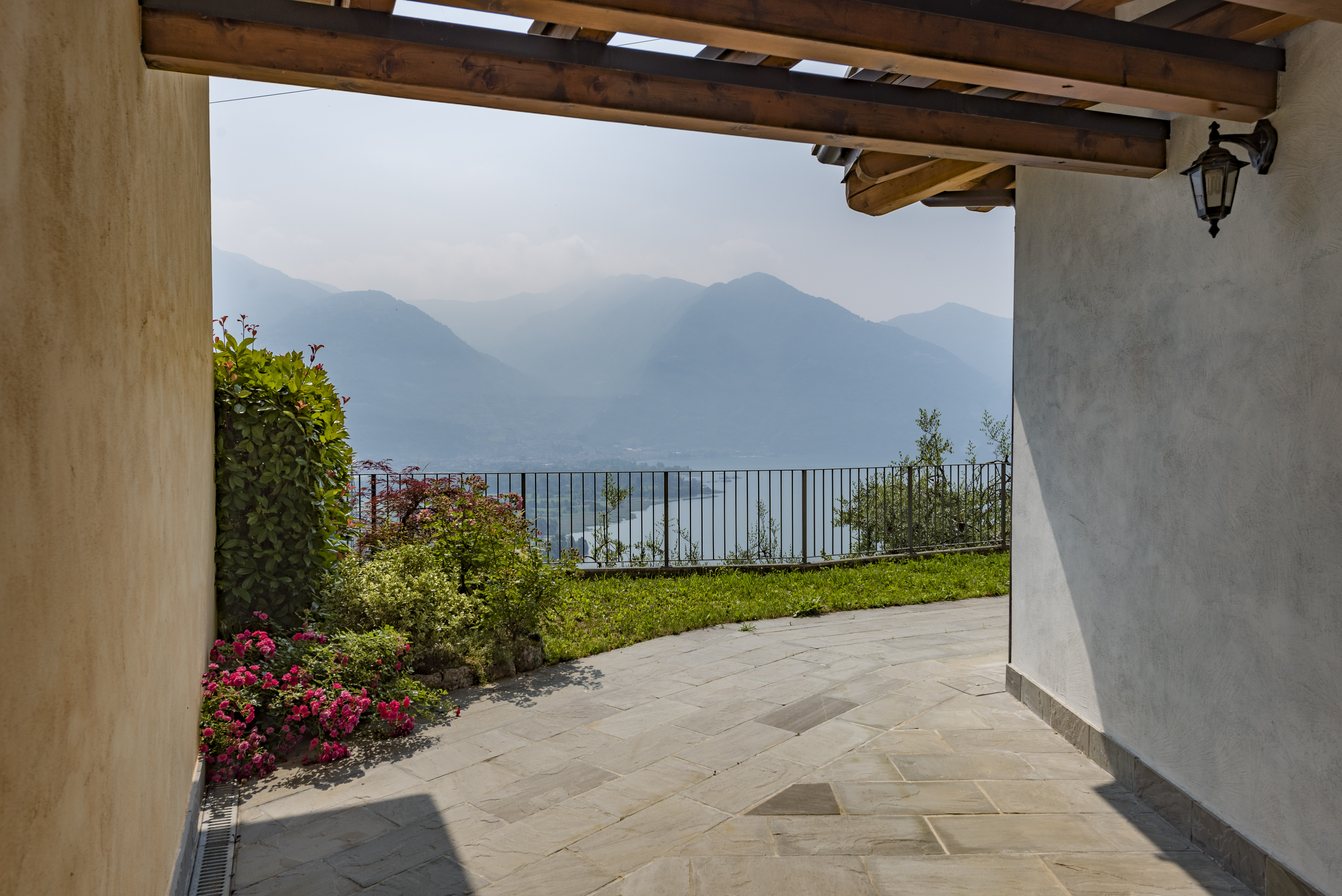 Ingresso privato con accesso diretto al giardino e al porticato vista lago