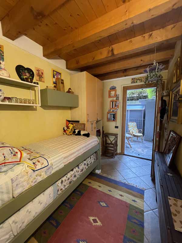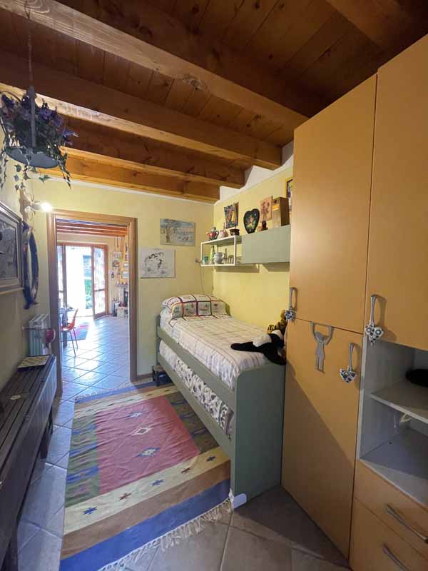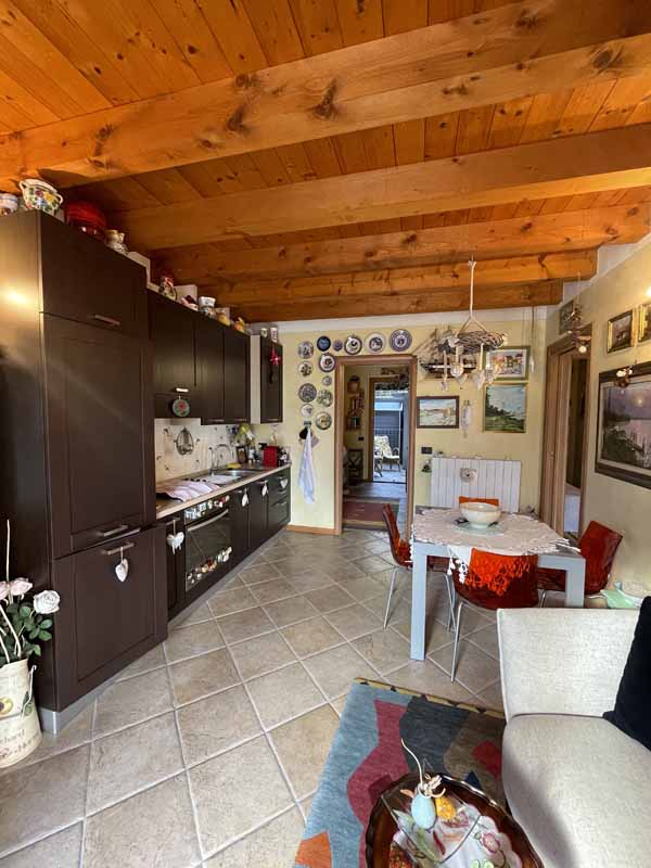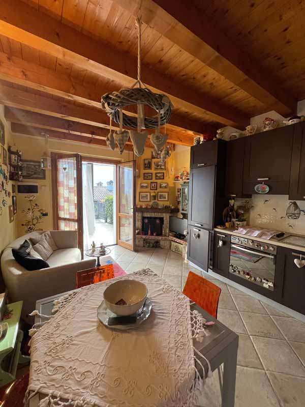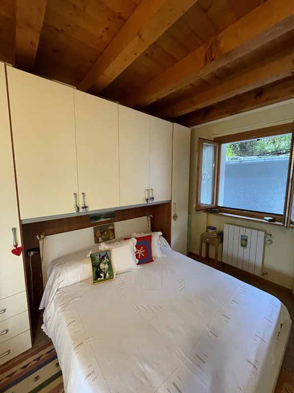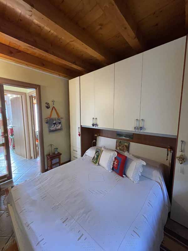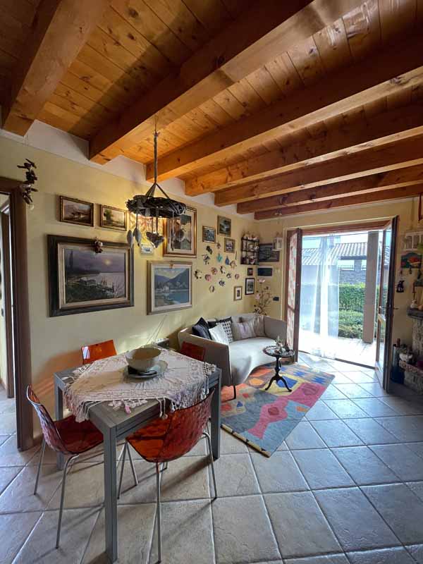 L’abitazione, completamente arredata (esclusi divano e quadri), si sviluppa su un unico livello e si compone di una luminosa zona giorno con cucina a vista, camino a legna e possibilità di divano letto, il tutto impreziosito da travi in legno a vista. La zona notte include una camera doppia con uscita diretta sul porticato, una camera matrimoniale finestrata e un bagno completo di lavatrice.