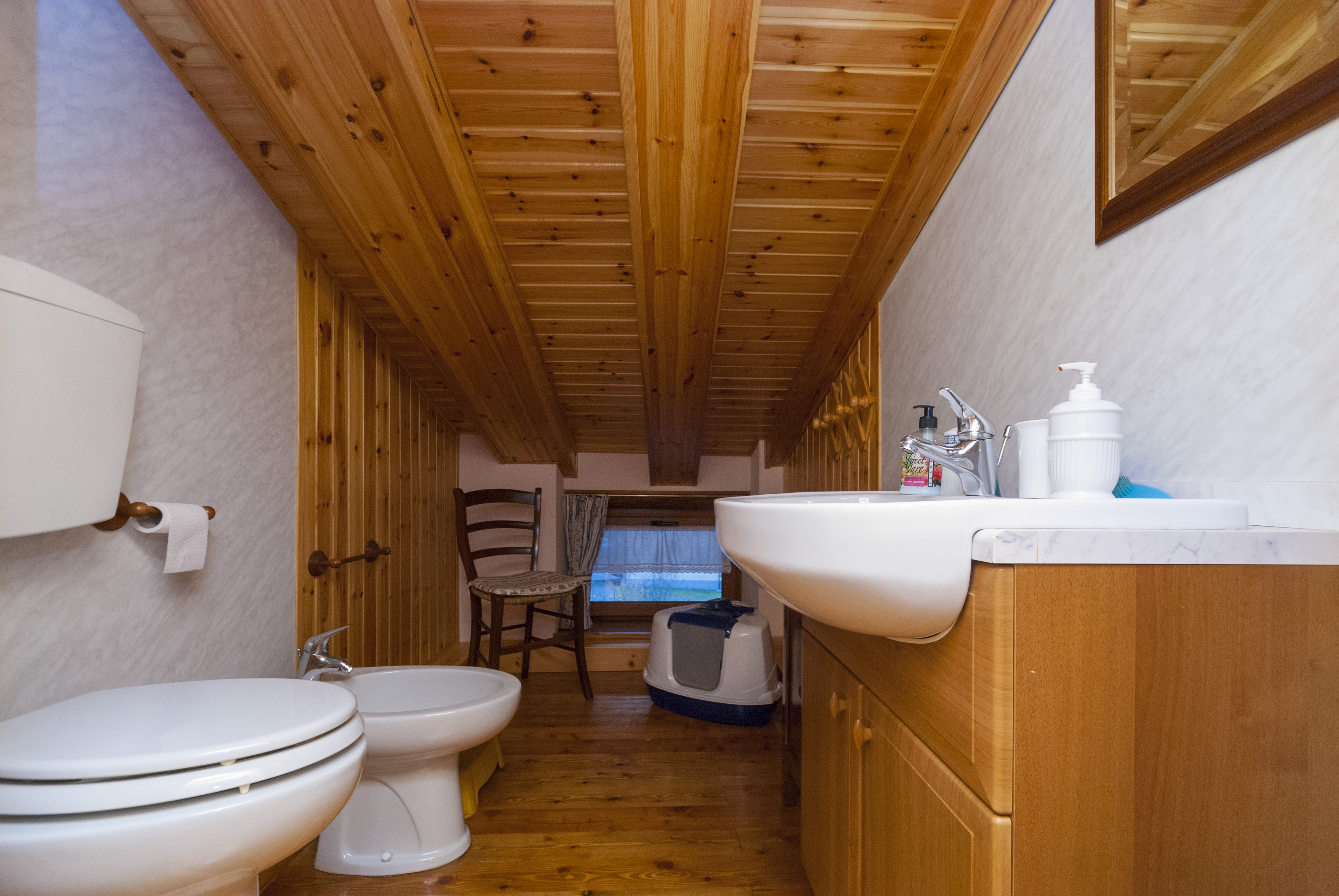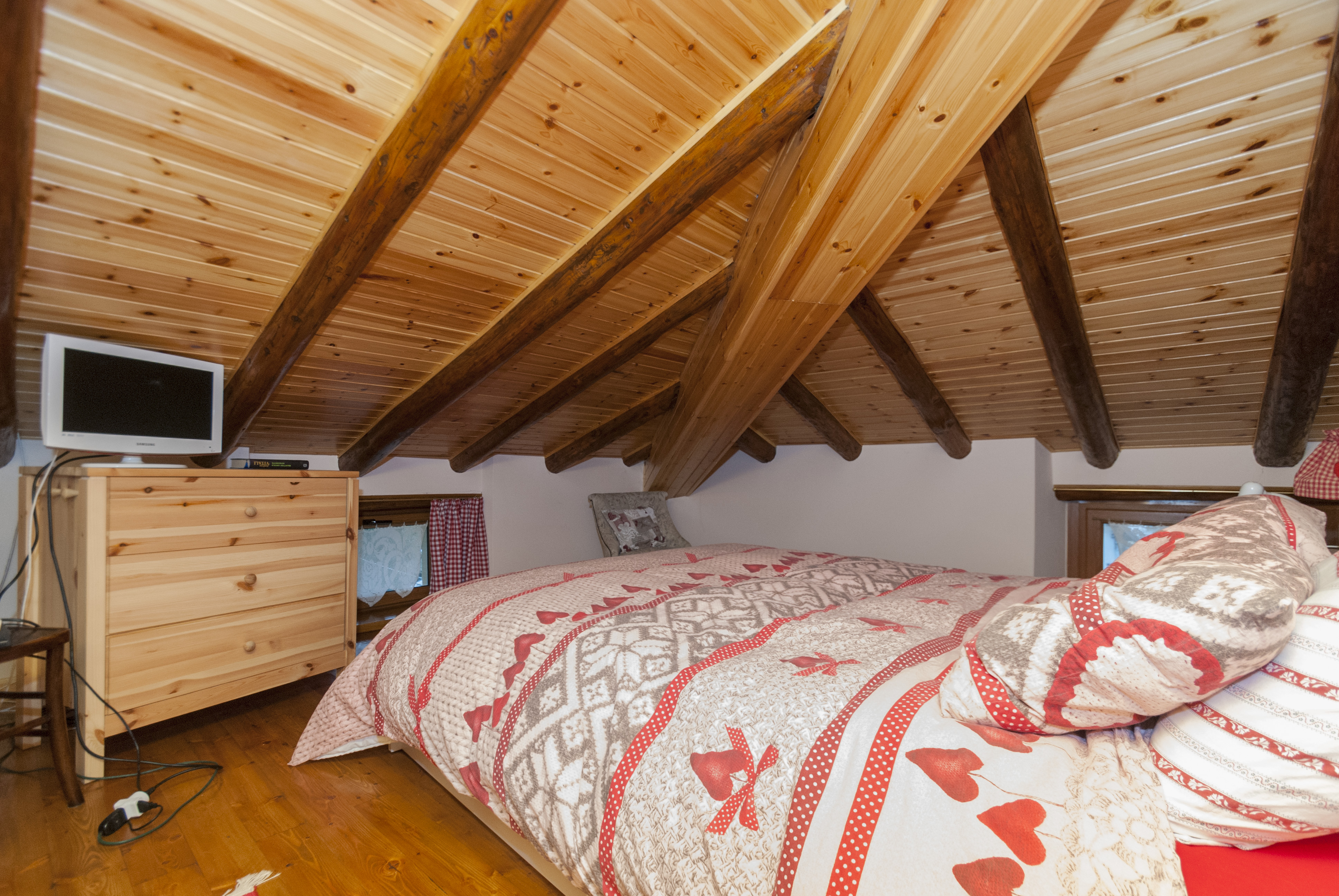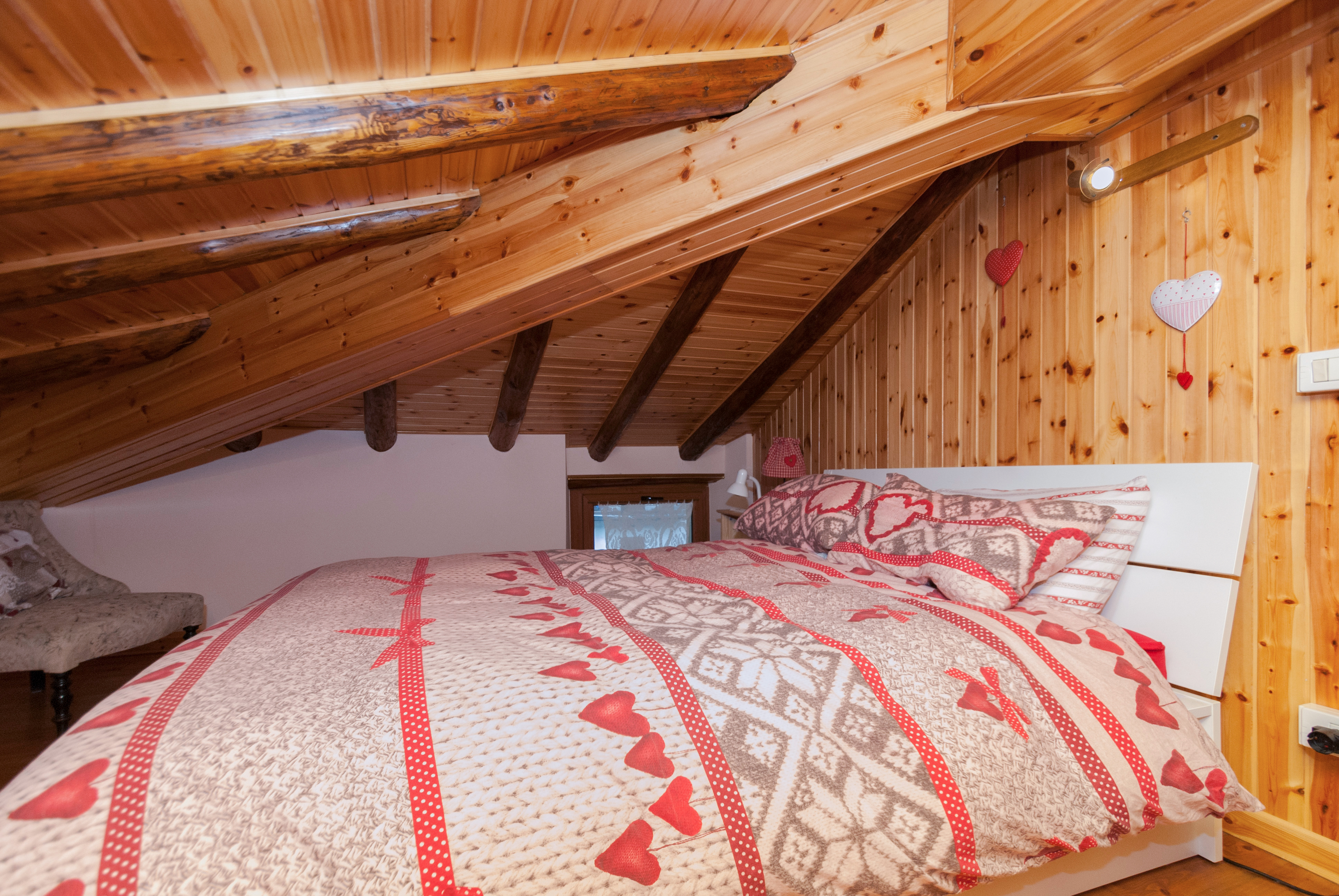 La zona notte, al livello superiore, comprende un secondo bagno e due camere da letto: una matrimoniale e una tripla, ideali per famiglie o gruppi.