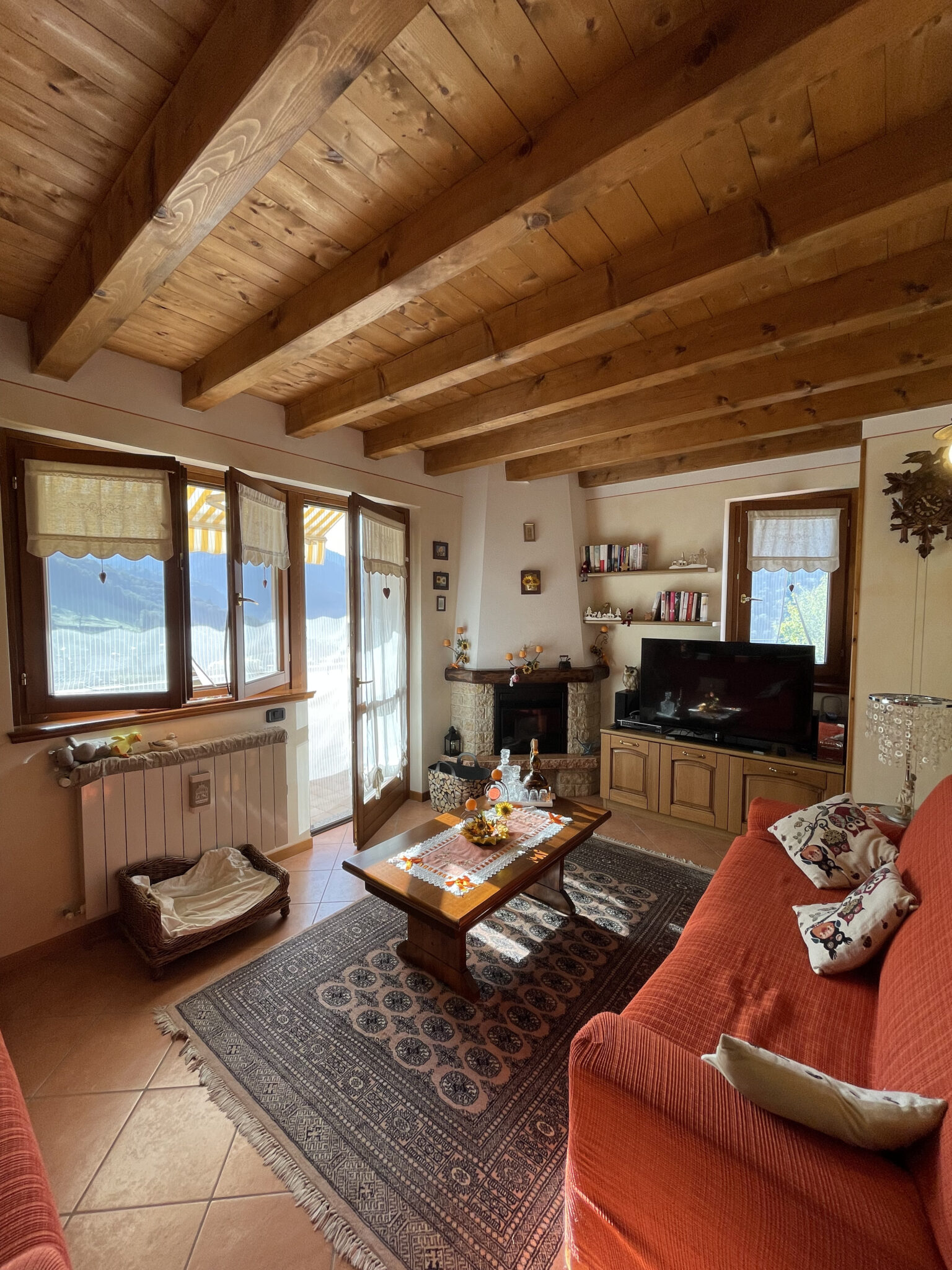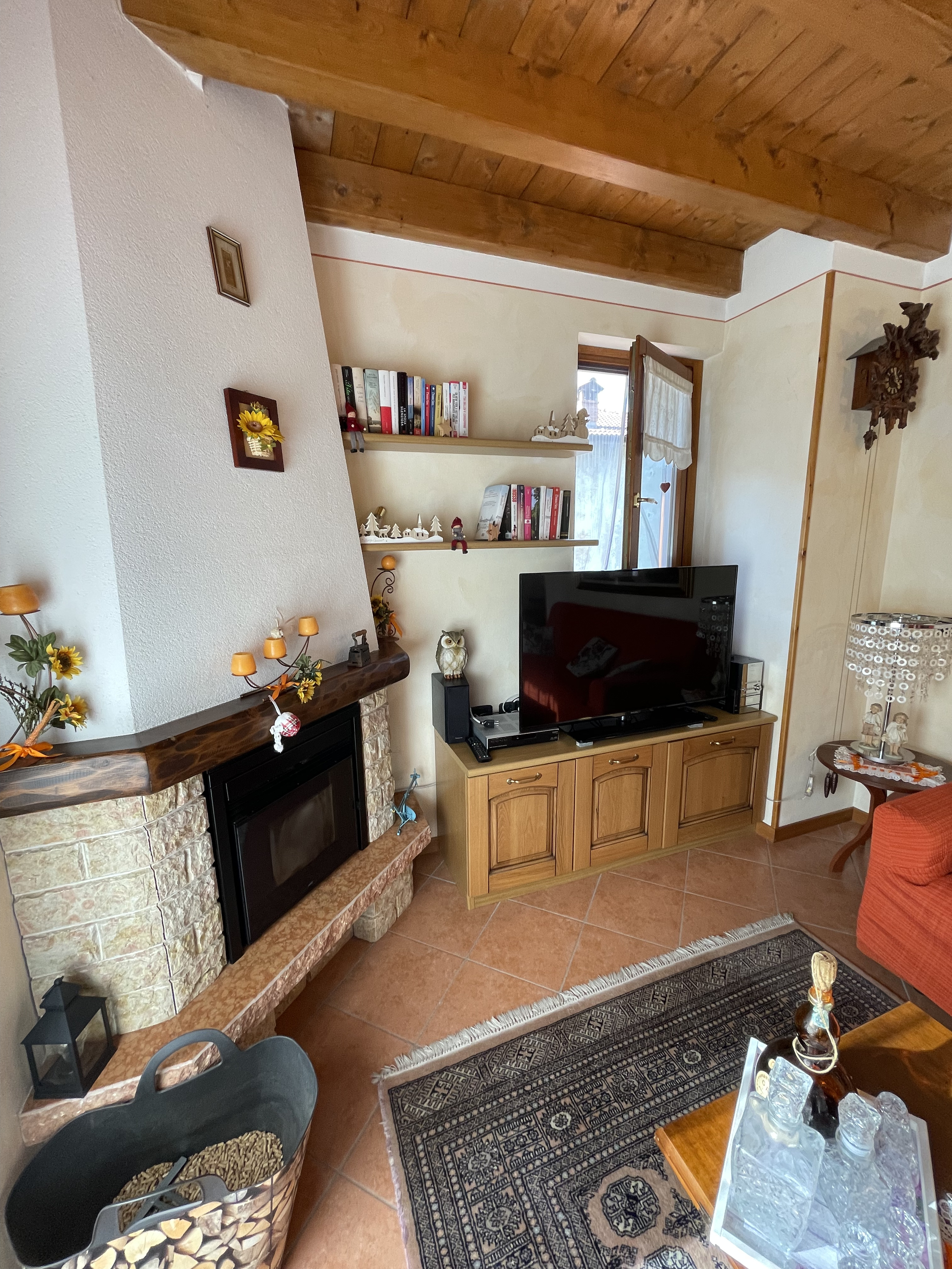 Atmosfera tipica alpina grazie a travi in legno e camino