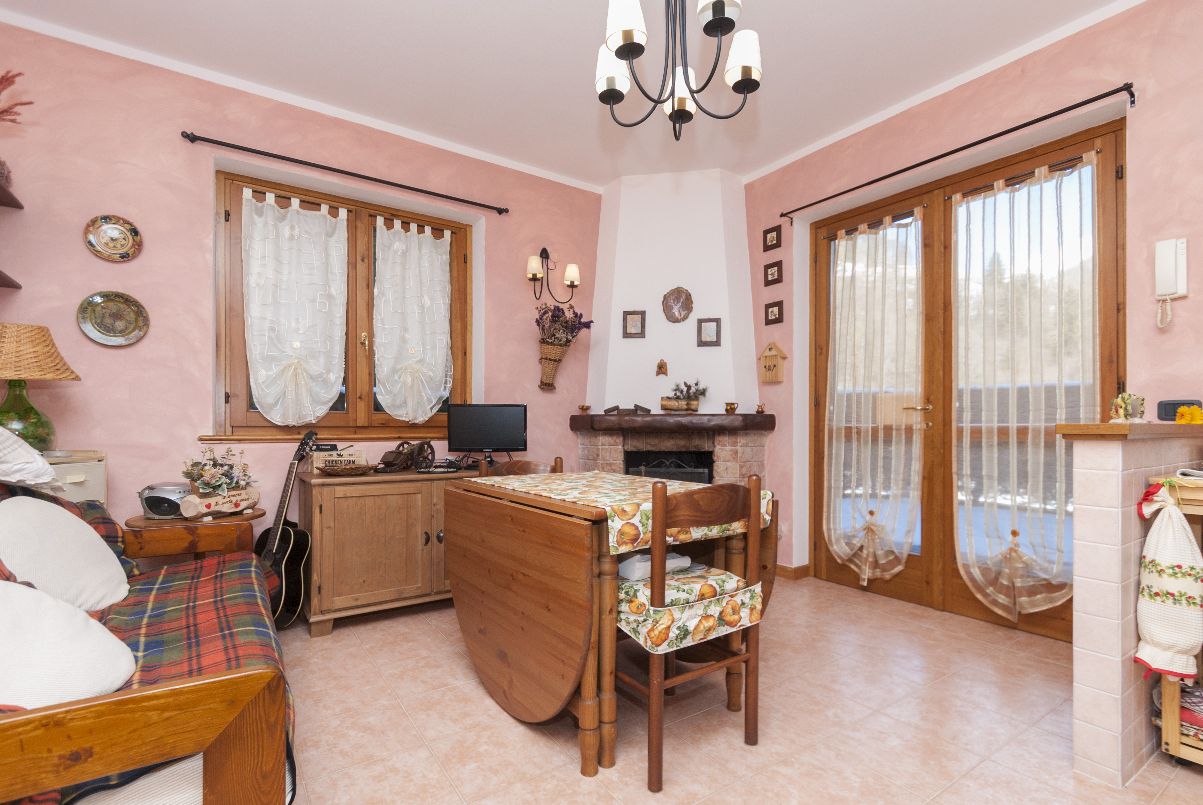 L’immobile viene venduto completamente arredato ed è composto da una luminosa zona giorno con soggiorno, divano letto, angolo cottura attrezzato e un suggestivo camino a legna, che rende l’ambiente caldo e accogliente.