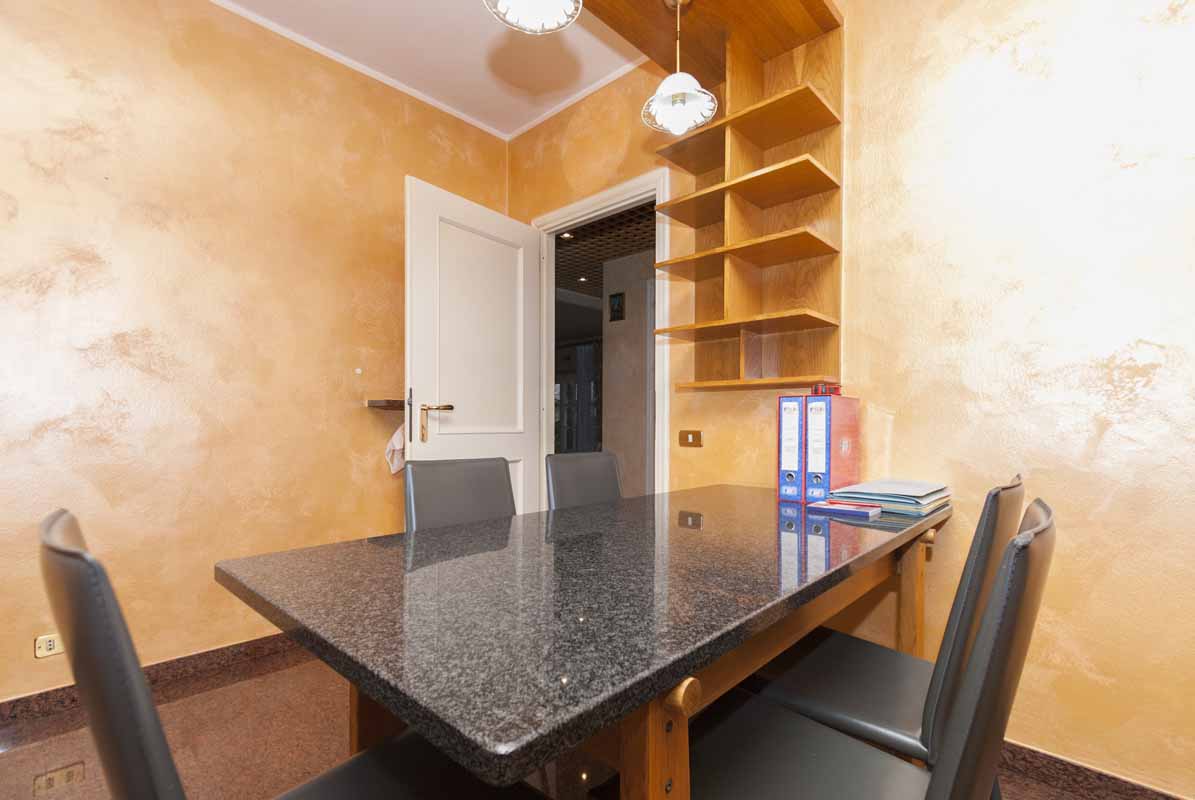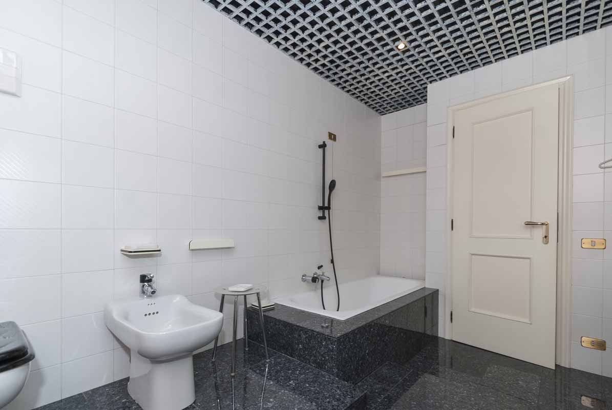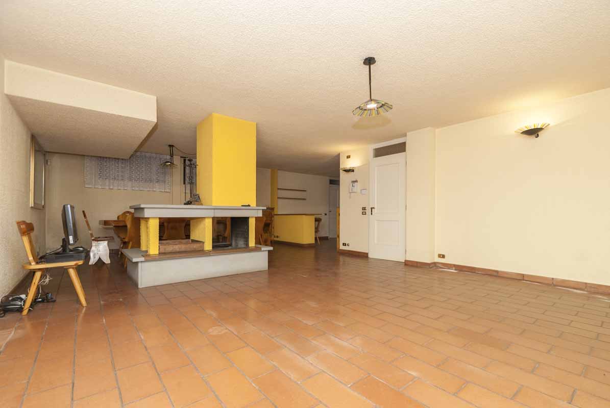 Sempre sullo stesso livello troviamo un secondo appartamento indipendente di tipologia bilocale, collegato internamente ma dotato anche di ingresso privato dall’esterno, composto da soggiorno con cucina, bagno e camera matrimoniale: soluzione ideale per ospiti, familiari o personale di servizio.
