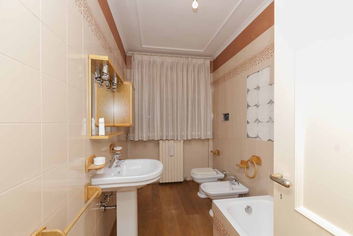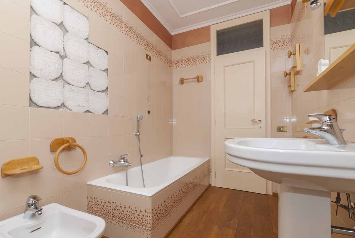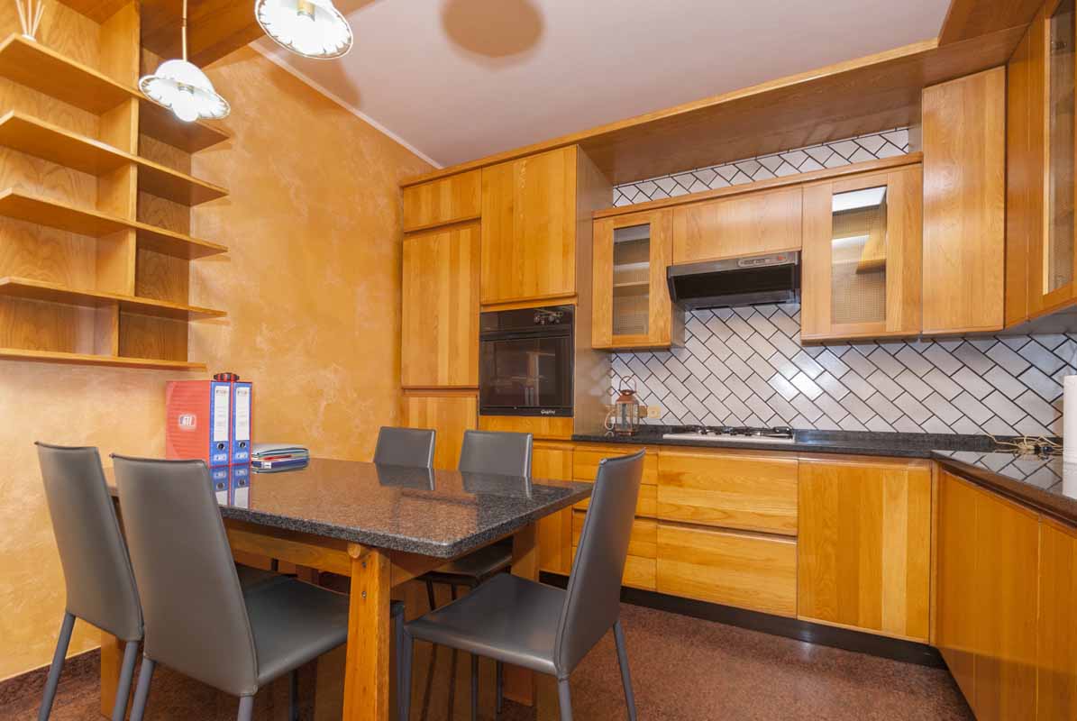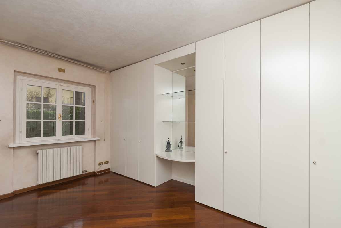 Sempre sullo stesso livello troviamo un secondo appartamento indipendente di tipologia bilocale, collegato internamente ma dotato anche di ingresso privato dall’esterno, composto da soggiorno con cucina, bagno e camera matrimoniale: soluzione ideale per ospiti, familiari o personale di servizio.