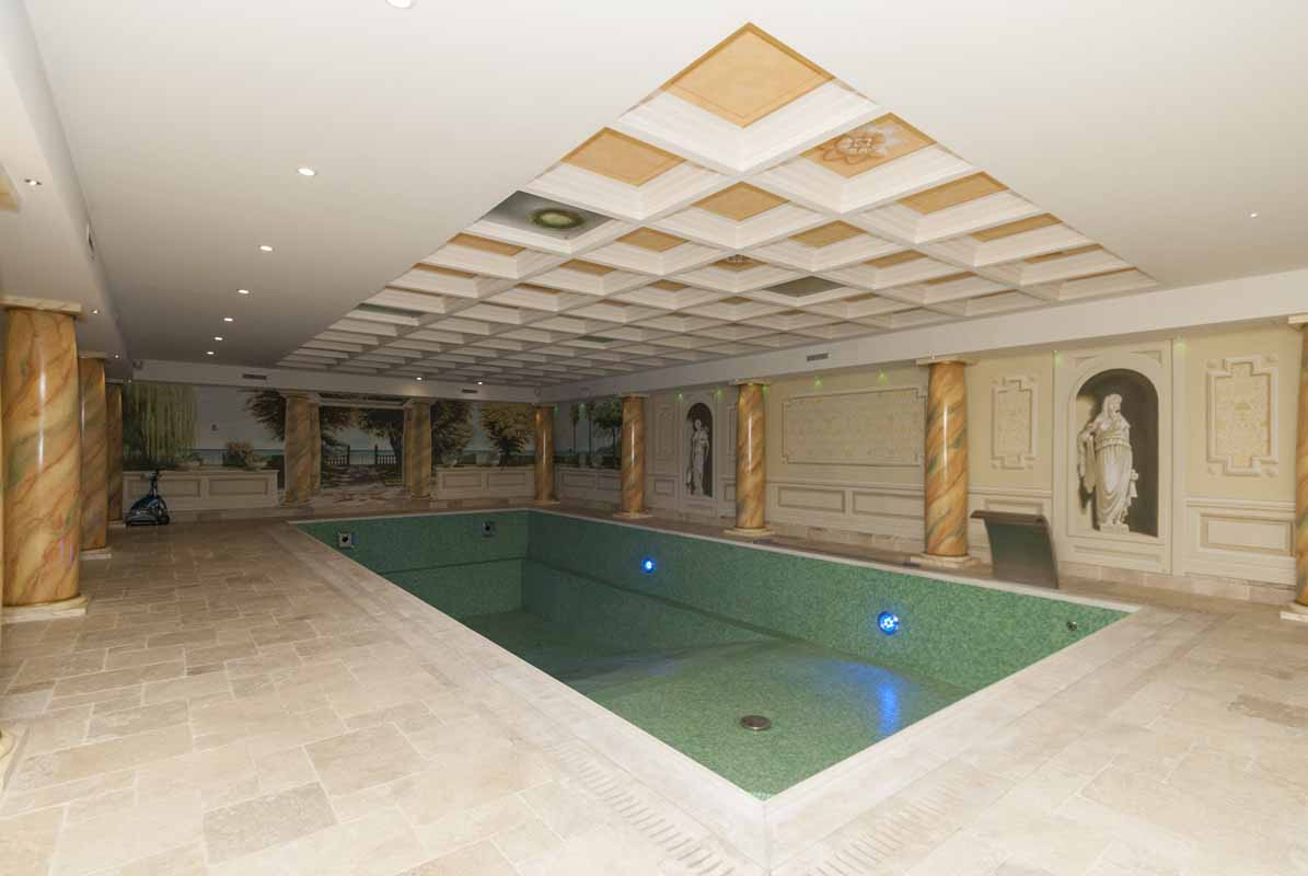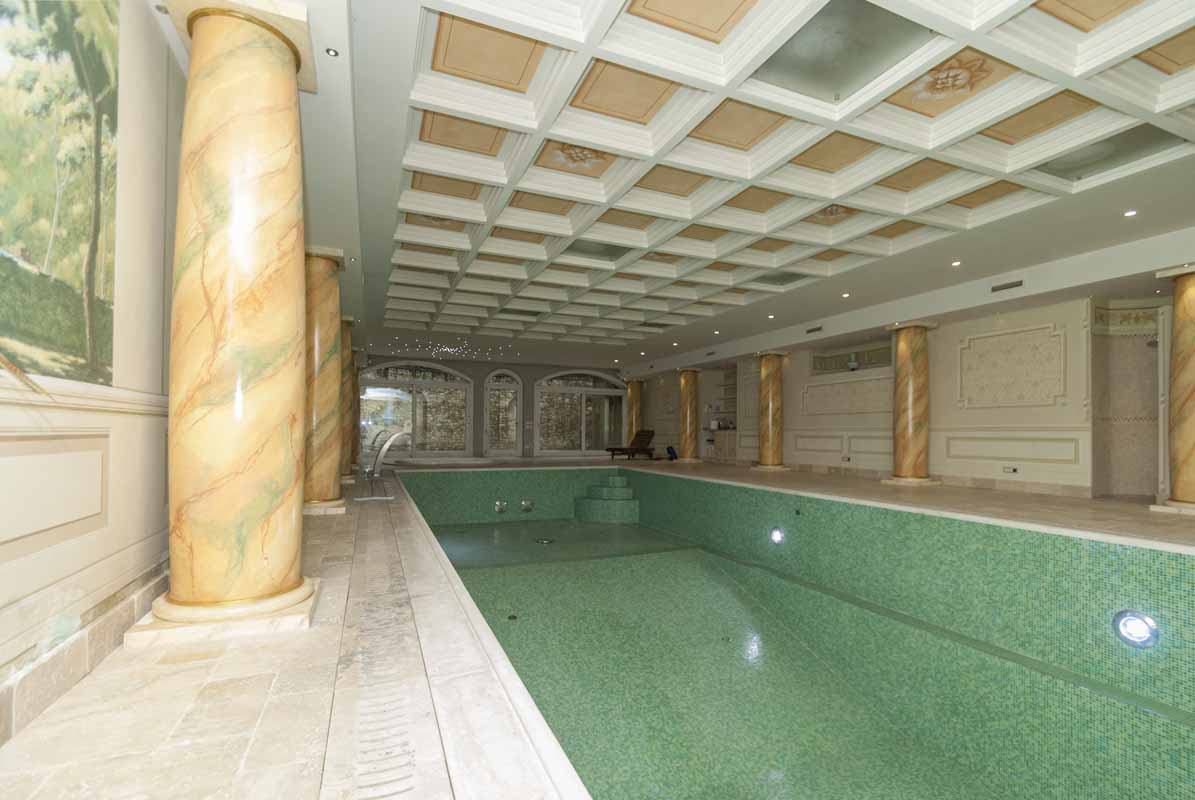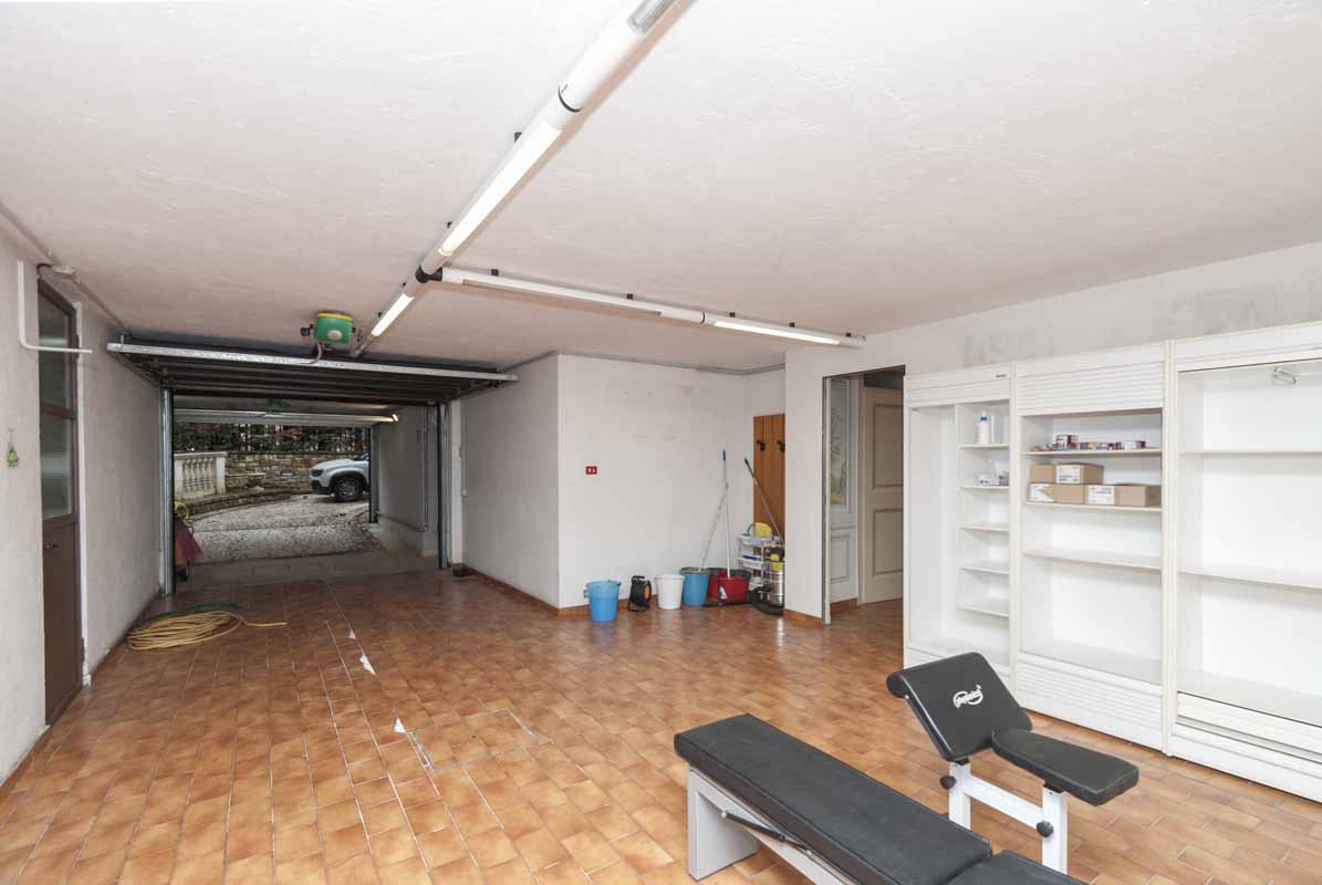 Il piano interrato, accessibile anche tramite ascensore esterno, ospita una grande taverna ideale per momenti conviviali e una splendida area wellness privata con palestra, piscina con nuoto controcorrente e jacuzzi. La zona fitness si affaccia su un ulteriore ampio porticato, perfetto per rilassarsi durante le belle giornate.